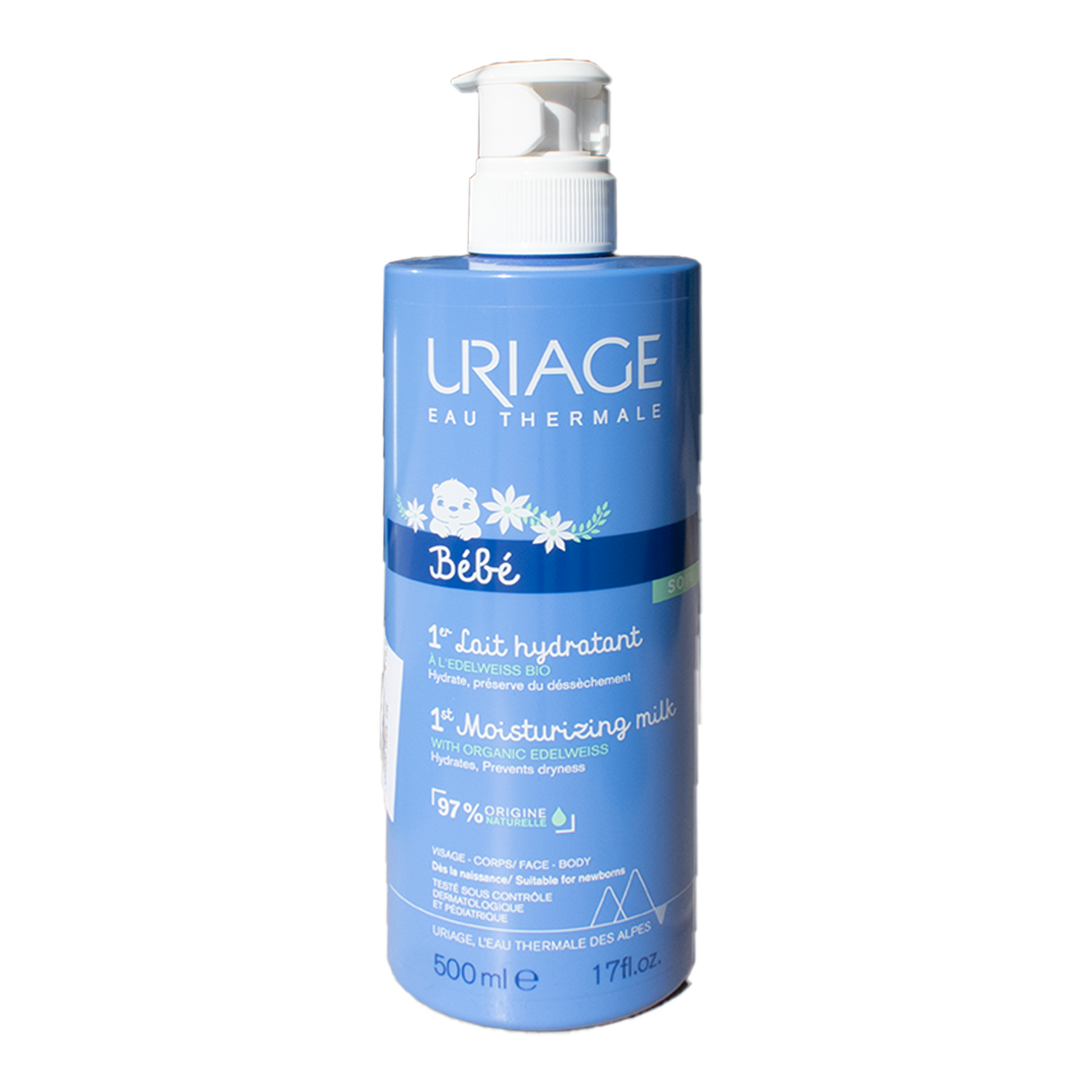 Uriage's smooth and creamy emulsion intensely hydrates the baby's delicate skin and prevents further dryness.